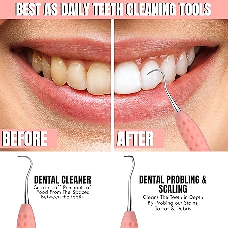 Sản phẩm Professional Dental Tools Tartar Scraper for Dentist, Personal Use and Pets Plaque Remover for Teeth, Premium Oral Care Double Ended Dental Scaler | U5/33 Stainless Steel (Pink, Silicone Handle) đang được bán với giá ưu đãi là $9.7991 tại nước Mỹ.