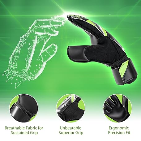 Professional Soccer Goalkeeper Goalie Gloves - Super Superior Grip, Finger Protection, High Performance - Durable & Comfortable Training/Match Gloves for Adults, Youth, Kids (Size 4-10)