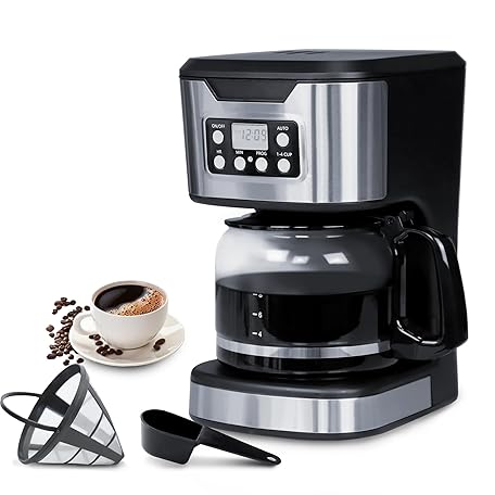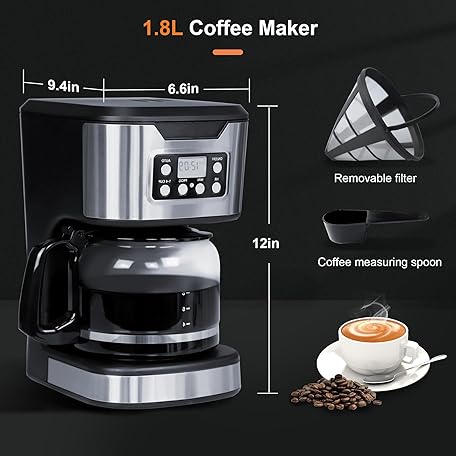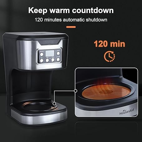 Programmable Coffee Maker 12 Cup Brew & Drip coffee machine, Fully Automatic, 1-4 Cup Setting, Stainless Steel, Keep- Warm Function, Household, Home and Office, Black