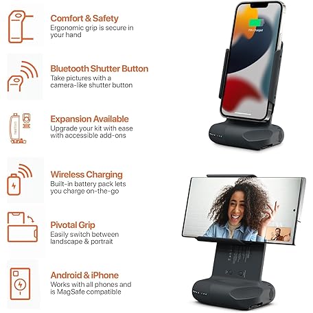 Thông tin sản phẩm ProGrip Mobile Battery Grip, DSLR-Style Phone Camera Grip with Built-in Powerbank of Qi Charging, Ergonomic Handle with Wireless Shutter Button, Phone Stand Dock, Built-in Cold-Shoe & Tripod Mount