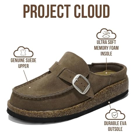 Project Cloud Genuine Leather Moccasin-Style Clogs for Women - Memory Foam and Water Resistant Mules Slip-on - Non-Slip and Durable Clogs Casual Shoes for Women Footwear (Carline)
