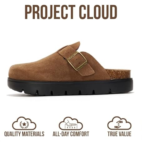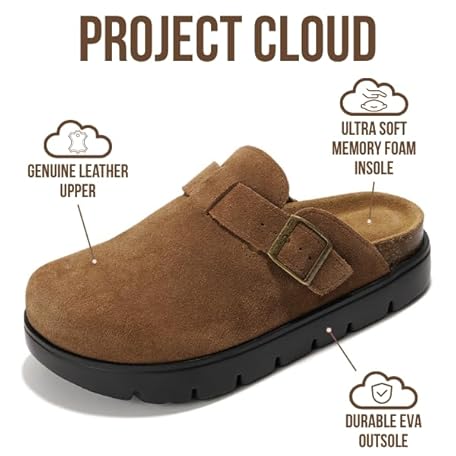 Project Cloud Genuine Leather Platform Clogs for Women Footwear - Memory Foam Arch Support Cork Footbed Casual Shoes & Mules for Women 2025 (Benton Chunky)