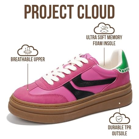 Project Cloud Platform Sneakers for Women Footwear - Memory Foam Insole Womens Shoes, Lightweight and Non-Slip Sole Lace Up Fashion Sneakers (Dodge)