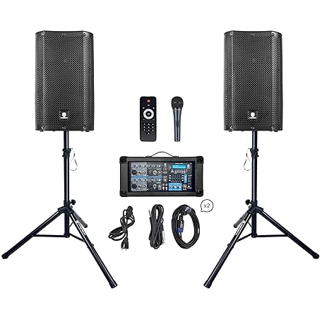 PRORECK DELTA 10 1800W Bluetooth PA Speaker System with 4-Channel Powered Mixer, 2 10-Inch Passive Speakers, Stands, Reverb Effects, and 15V Phantom Power. Perfect for DJs, Bands, Karaoke, Live Events