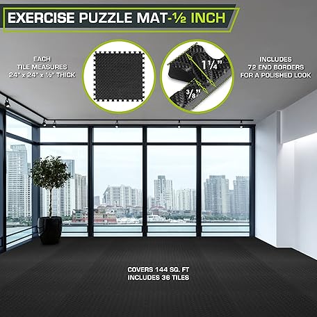 Thông tin sản phẩm ProsourceFit Puzzle Exercise Mat ½ in, EVA Interlocking Foam Floor Tiles for Home Gym, Mat for Home Workout Equipment, Floor Padding for Kids, Black, 24 in x 24 in x ½ in, 144 Sq Ft - 36 Tiles
