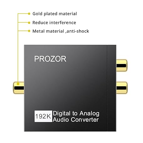 Thông tin sản phẩm PROZOR 192KHz Digital to Analog Audio Converter DAC Digital SPDIF Optical to Analog L/R RCA Converter, Toslink Optical to 3.5mm Jack Adapter for PS3 HD DVD PS4 Amp Apple TV Home Cinema