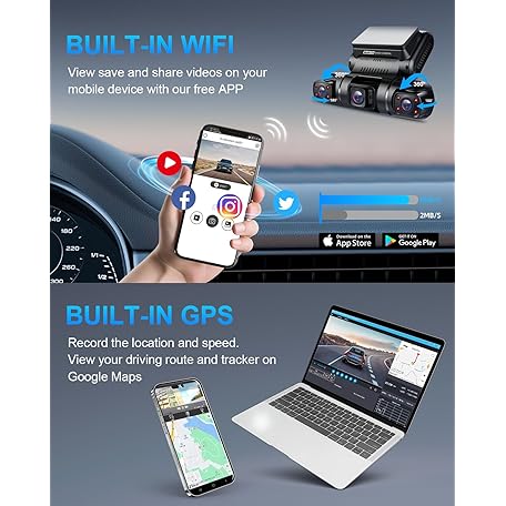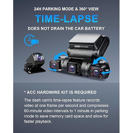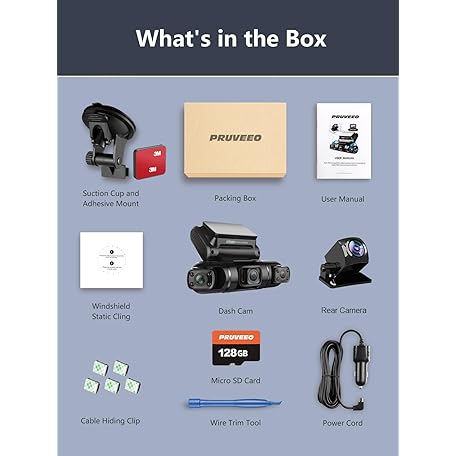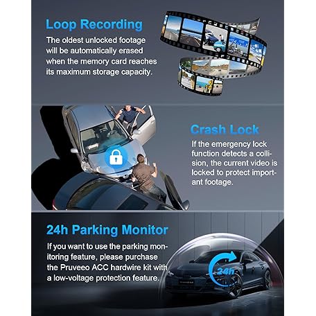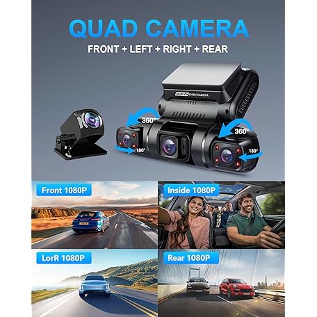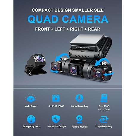 Thông tin sản phẩm PRUVEEO 360 Degree View 4 Channel Dash Cam Front and Rear Inside Left Right, Dash Camera for Cars, Built-in GPS WiFi Night Vision, 24/7 Recording Parking Mode Monitor, Free 128G Card