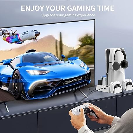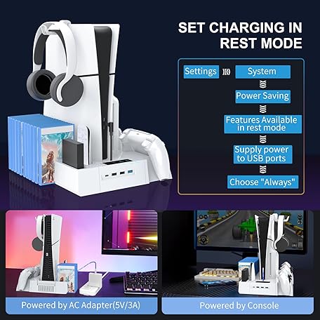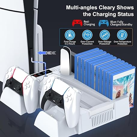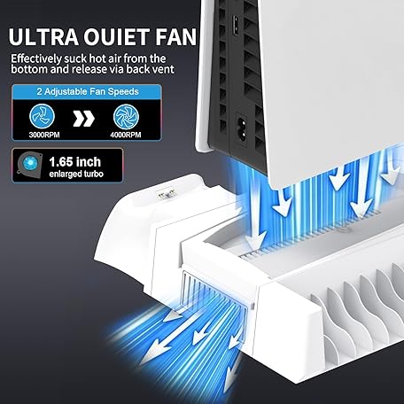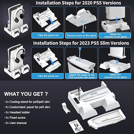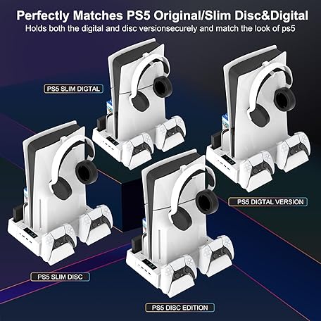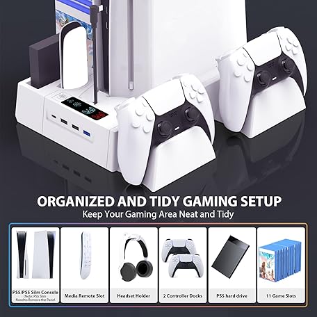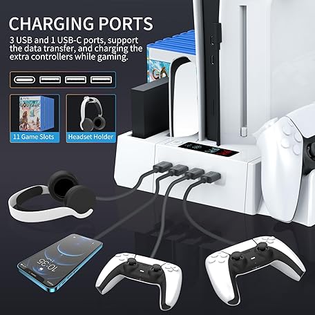 Thông tin sản phẩm PS5 / PS5 Slim Cooling Station with Controller Charging Station, Cooling Stand for PlayStation 5 Console, PS 5 Dock Accessories Organizer with Storage Slot, PS 5 Cooler Fan, Headset Holder, 4 USB Hub