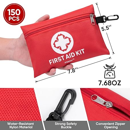 PTEROMY 150 Piece Mini First Aid Kit, Portable Small Emergency Kits Compact 1st Aid Kit for Car, Travel, Home, Camping, Outdoor, Hiking