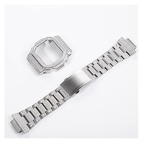 PTREWB Diamond Inlaid Strap Bezel Compatible With DW-5600 GWM5610 GWB5600 Metal Case Band 316L Stainless Steel Bracelet With Tools