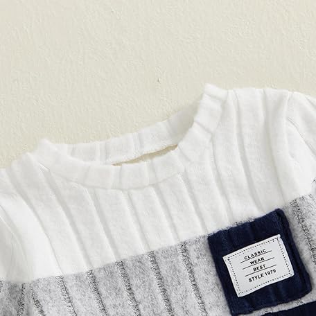 PUHHAPIEY Toddler Baby Boy Fall Winter Outfits Long Sleeve Patchwork Knit Pullover Sweatshirt and Solid Color Pants Sets Warm