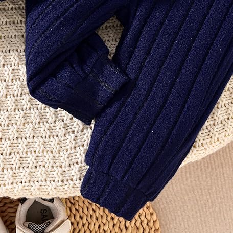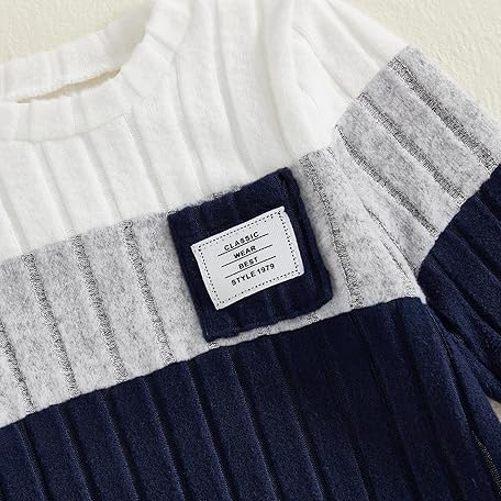 • PUHHAPIEY Toddler Baby Boy Fall Winter Outfits Long Sleeve Patchwork Knit Pullover Sweatshirt and Solid Color Pants Sets Warm