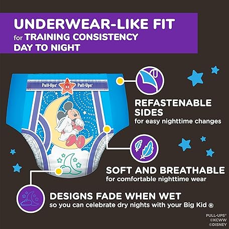 Thông tin sản phẩm Pull-Ups Boys' Night-Time Potty Training Pants, Size 5T-6T Overnight Training Underwear (46-60 lbs), 44 Ct