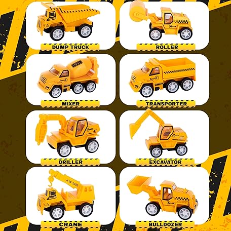 Thông tin sản phẩm Pullback Mini Construction Vehicles for Kids, Construction Truck Toy Set, 8 Small Construction Trucks (2.5") with Pullback Mechanism, 8 Different Vehicles, Construction Toys for Boys Party