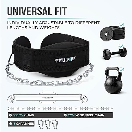 Thông tin sản phẩm PULLUP & DIP Weightlifting Belt for and additional Strength and Muscle Building, Weight Belt with Steel Chain & 3x Carabiner, Dip Belt for Calisthenics, Weight Training, Training at Home and Bodybuilding