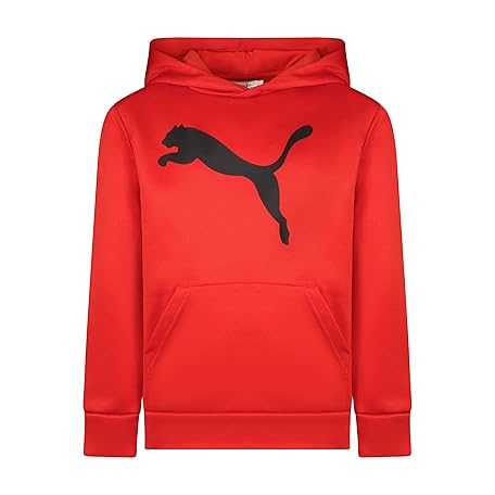 PUMA Boys' Logo Pullover Hoodie, Fleece Sweatshirt, Large Front Pocket