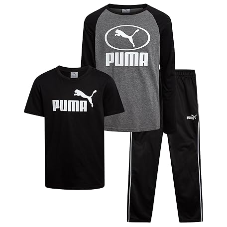PUMA Boys Sweatpants Set - 3 Piece Fleece Pullover Long Sleeve Shirts Boys TShirt and Jogger Pants Kids Activewear Set (8-16)