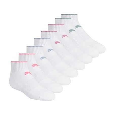 • PUMA Girls' Quarter Crew Cushioned Arch Support Socks (8-Pack)