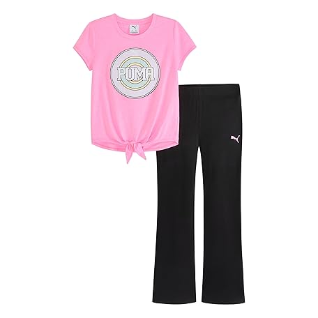 PUMA girls Short Sleeve Tee & Legging Set, Logo Graphics, Crewneck
