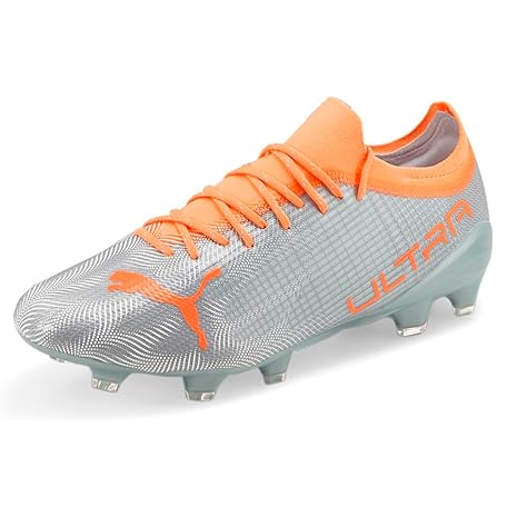 PUMA - Mens Ultra 2.4 Fg/Ag Shoes, Size: 9.5 M US, Color: Diamond Silver/Neon Citrus