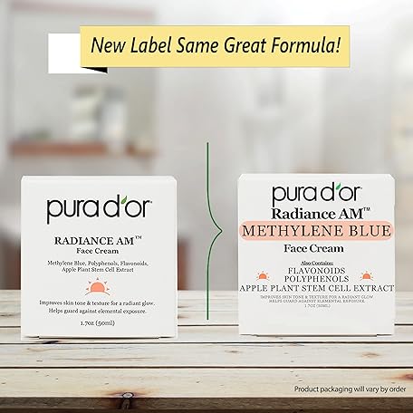 Thông tin sản phẩm PURA D'OR 1.7 Oz Radiant Glow AM Face Cream - Methylene Blue, Polyphenols, Flavonoids, Apple Stem Cell Extract - Aloe Vera Base Anti-Aging Morning Moisturizer - Daily Facial Treatment For Women & Men