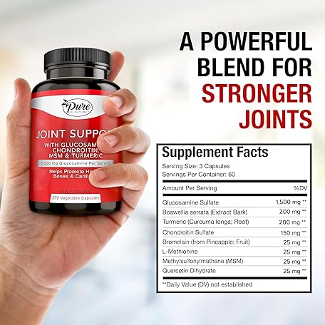 Thông tin sản phẩm Pure By Nature Joint Support, Glucosamine with Chondroitin Turmeric MSM Boswellia Supplement, 270 Capsules