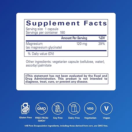 Thông tin sản phẩm Pure Encapsulations Magnesium (Glycinate) - Supplement to Support Stress Relief, Sleep, Heart Health, Nerves, Muscles, and Metabolism* - with Magnesium Glycinate - 180 Capsules