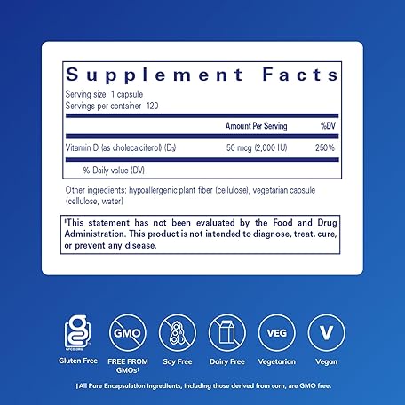 Thông tin sản phẩm Pure Encapsulations Vitamin D3 Vegan | Support for Musculoskeletal, Cardiovascular, Neurocognitive, Cellular, and Immune Health* | 120 Capsules