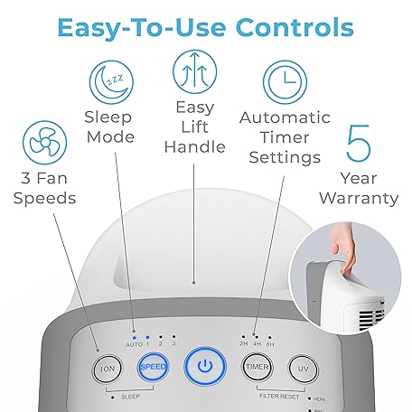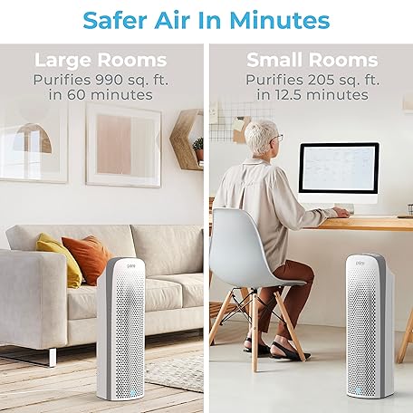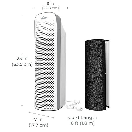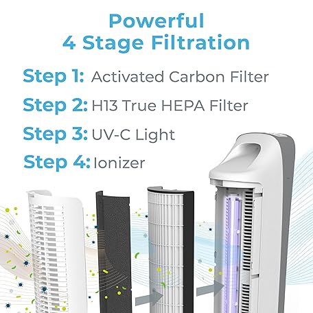 Thông tin sản phẩm Pure Enrichment PureZone Elite True HEPA Large Room Tower Air Purifier with Air Quality Monitor, 4 Stage Filtration and UV-C Light, Helps Destroy Bacteria, Smoke, Pollen & Dust (White)