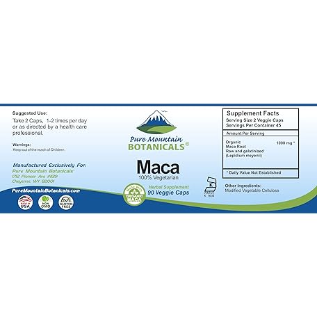 Sản phẩm Pure Mountain Botanicals Maca Root Capsules - Kosher Vegan Caps Now with 1000 mg Organic Raw Macca and Gelatinized Maca Root Supplement đang được bán với giá ưu đãi là $23.7293 tại nước Mỹ.