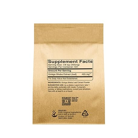 Thông tin sản phẩm Pure Original Ingredients Ginkgo Biloba Powder (8 oz) Always Pure, No Fillers Or Additives, Lab Verified