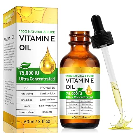 Pure Vitamin E Oil for Skin Blend 75,000 IU, Natural Organic Vitamin E oil for Scars, Hair & Face (2 Fl Oz) - Non GMO, Cold Pressed, Cruelty Free Skin Repair & Moisturizing Solution, Easy to Absorbed