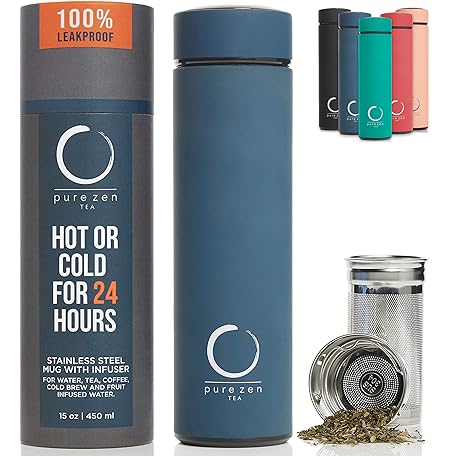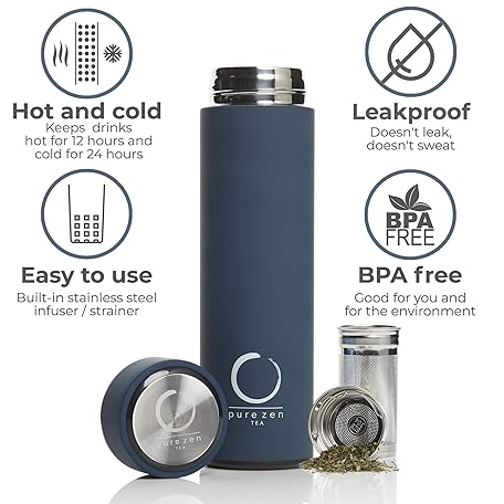 Sản phẩm Pure Zen Tea Thermos with Infuser for Hot and Cold Infusions - Stainless Steel - Tea Infuser Bottle - Leakproof Travel Mug with Filter - 15oz - Blue đang được bán với giá ưu đãi là $31.0105 tại nước Mỹ.