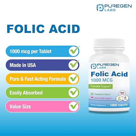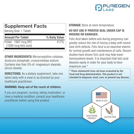 Sản phẩm Puregen Labs Folic Acid 1000 mcg Tablets | Vitamin B9 | Non-GMO | Gluten Free | Made in USA | Value Size 1000 Tablets đang được bán với giá ưu đãi là $27.1955 tại nước Mỹ.
