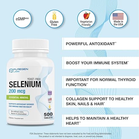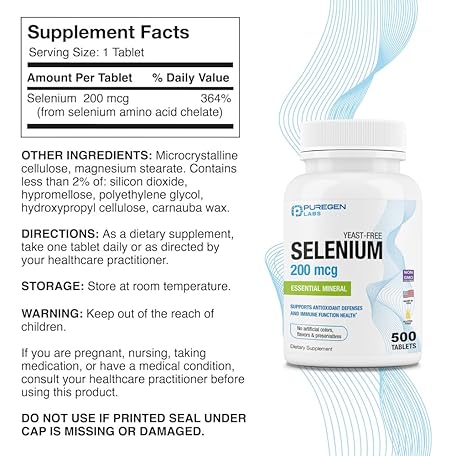 Thông tin sản phẩm Puregen Labs Selenium 200 mcg Yeast Free Essential Mineral - 500 Vegetarian Tablets | Immune & Antioxidant Support | Non-GMO, Gluten Free, Made in USA