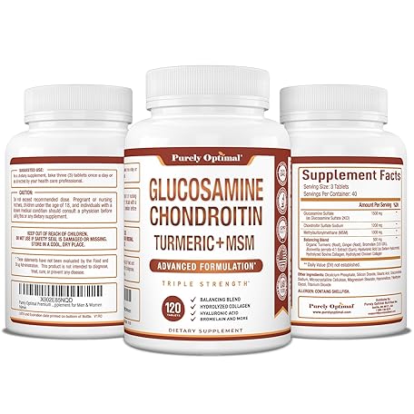 Sản phẩm Purely Optimal Glucosamine Chondroitin MSM Supplement w/Turmeric & Boswellia - Glucosamine Sulfate Joint Supplement for Men & Women - 120 Tablets đang được bán với giá ưu đãi là $17.4291 tại nước Mỹ.