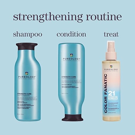 Thông tin sản phẩm Pureology Strength Cure Strengthening Shampoo & Conditioner Set - For Damaged, Color-Treated Hair, Fortifies & Strengthens Hair, Sulfate-Free & Vegan