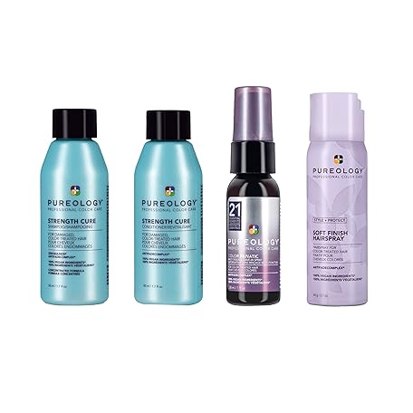 Pureology Strength Cure Travel Size Bundle For Damaged, Color Treated Hair - Strengthens and Protects Hair from Damage, Sulfate-Free & Vegan