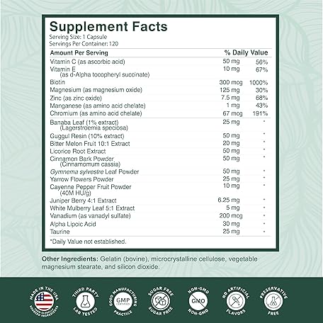 Thông tin sản phẩm PurePremium Normal Blood Sugar Support Supplement - 20 Active Ingredients Complex to Support Blood Sugar Levels Already in The Normal Range - with Cinnamon, Bitter Melon, Chromium, Mulberry - 120ct
