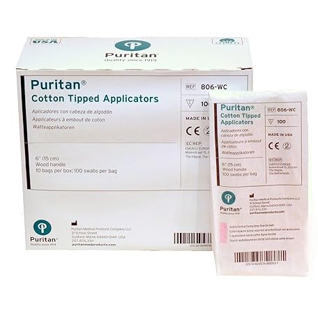 Thông tin sản phẩm Puritan 806-WC Cotton Tipped Non-Sterile Applicators/Swabs with Wood Shaft, 1/10" Diameter, 6" Overall Length (1000 Per Box)