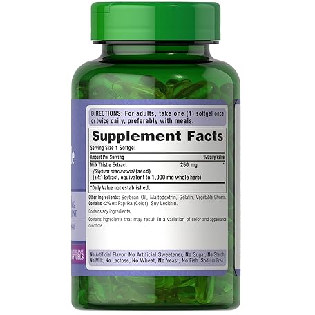 Sản phẩm Puritan's Milk Thistle 4:1 Extract 1000mg 180 Softgels (Silymarin) Liver Health đang được bán với giá ưu đãi là $14.17 tại nước Mỹ.