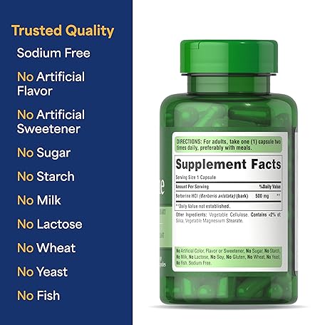 Thông tin sản phẩm Puritan's Pride Berberine 500 mg, Dietary Supplement Support for Heart Health, Weight Loss, Support Blood Sugar and Cholesterol, 1 Month Supply, 60 Capsules