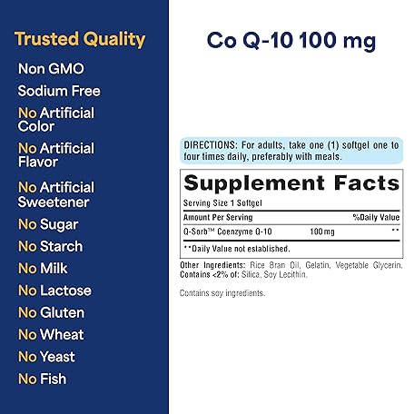 Thông tin sản phẩm Puritan's Pride Coenzyme CoQ10 100mg, Dietary Supplement for Heart Health, Blood Pressure, Oral Gum Health, and Healthy Aging Support, 60 Day Supply, 240 Rapid Release Softgels