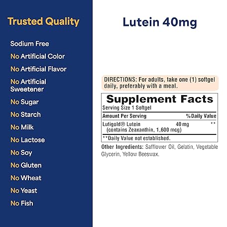 Thông tin sản phẩm Puritan's Pride Premium Lutigold™ Lutein Carotenoid 40mg with Zeaxanthin for Men and Women, Dietary Supplement for Eye Health Support, 8 Month Supply, 120 Easy-to-Swallow Softgels, 2 Pack