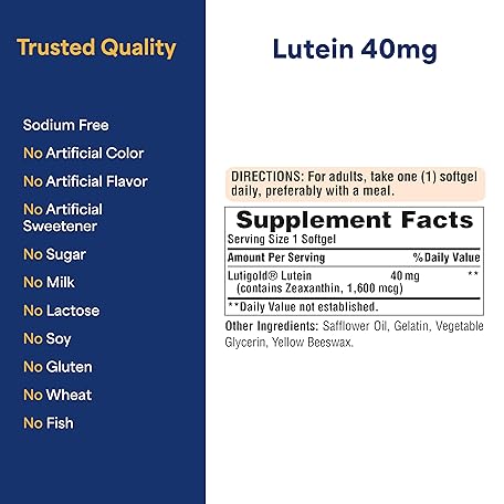 Thông tin sản phẩm Puritan's Pride Premium Lutigold™ Lutein Carotenoid 40mg with Zeaxanthin for Men and Women, Dietary Supplement for Eye Health Support, 8 Month Supply, 120 Easy-to-Swallow Softgels