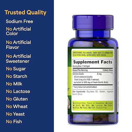 Thông tin sản phẩm Puritan's Pride Premium Odorless Garlic Fresh 500mg, Traditional Dietary Supplement for Heart Health and Circulation Support with Antioxidant Properties, 250 Rapid Release Softgels
