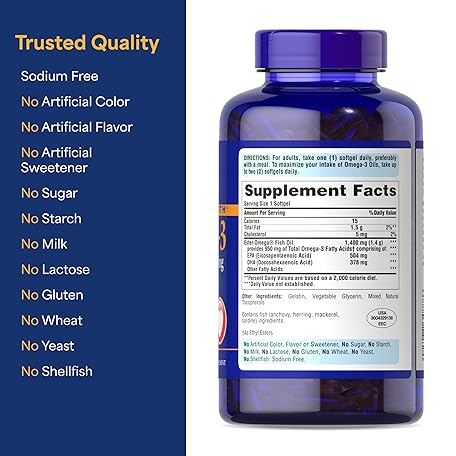 Thông tin sản phẩm Puritan's Pride Triple Strength Omega-3 Fish Oil 1400mg, Active Omega-3 950mg, Dietary Supplement for Heart, Joint, and Cellular Health Support, 240 Rapid Release Softgels (Packaging May Vary)