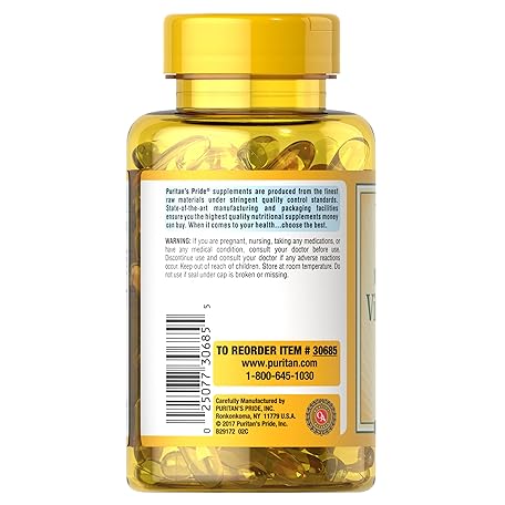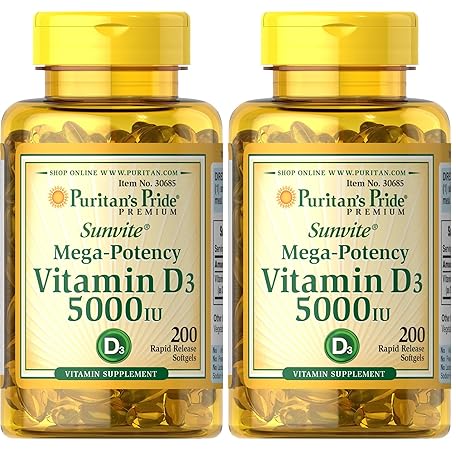 Thông tin sản phẩm Puritan's Pride Vitamin D3 5,000 IU Bolsters Immunity for Immune System Support and Healthy Bones and Teeth Softgels, Packaging May Vary, Unflavored, 200 Count (Pack of 2)