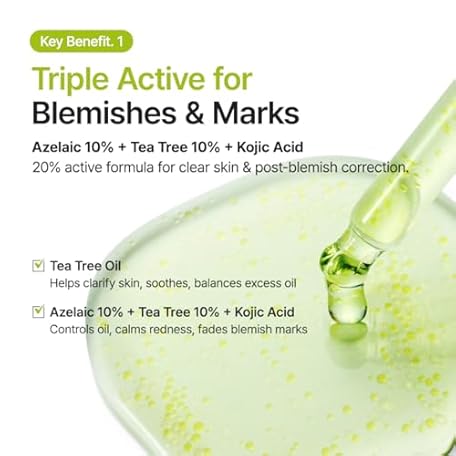 Thông tin sản phẩm PURITO Azelaic Acid 10% + Kojic Acid + Tea Tree Facial Serum | for Acne & Marks, Breakouts | High-Level Azelaic Acid 10% | Korean skincare, 30mL 1.01 fl.oz
