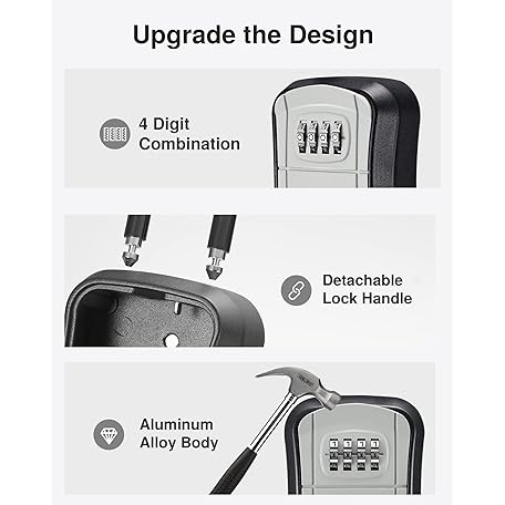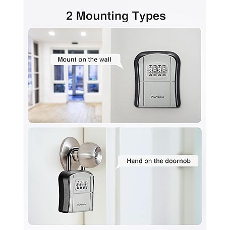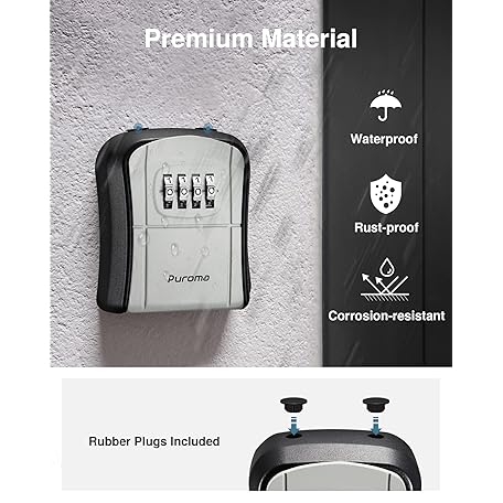Thông tin sản phẩm Puroma Key Lock Box, Portable Combination Lockbox Wall-Mounted Key Storage Box for House Keys, Resettable Code Safe Security Lock Box for Home, Office, Apartment Spare Key Storage (1 Pack, Gray)
